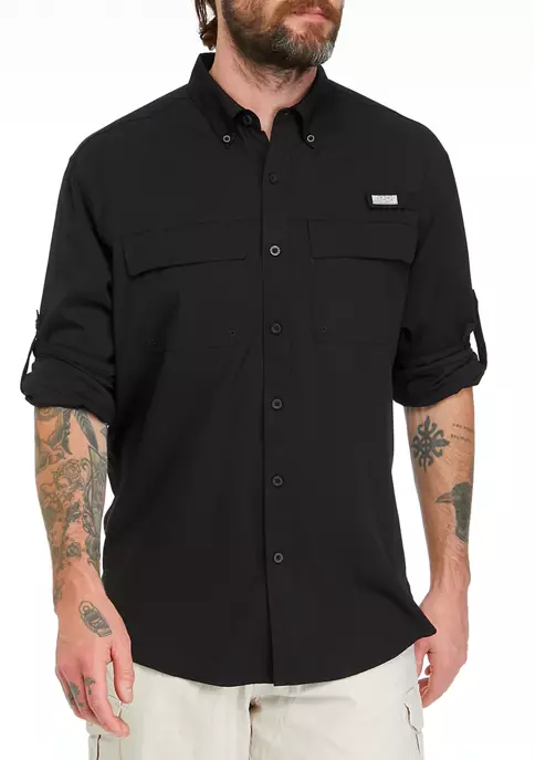 - Long roll-tab sleeves